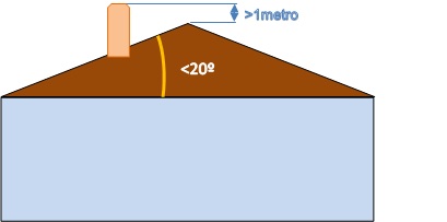 – 1 metro sobre la superficie del tejado o cualquier abertura o ventana situada a los lados o delante de la chimenea