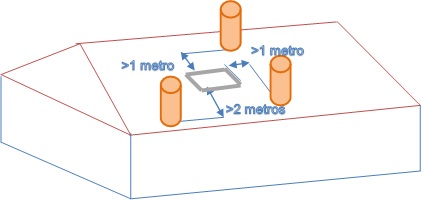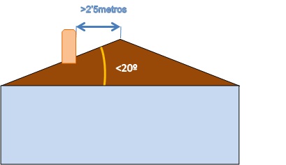 – 2’5 metros de distancia horizontal desde el remate a la superficie del tejado